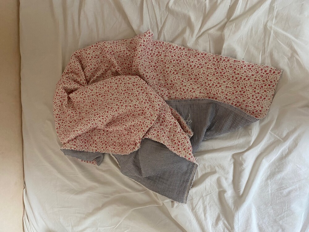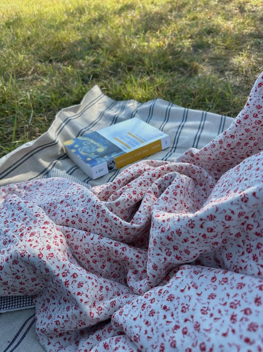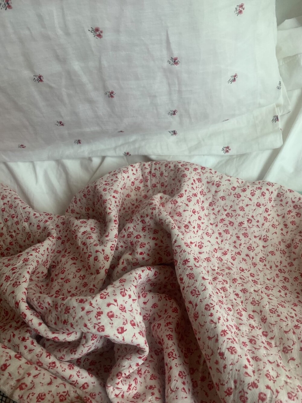 아오리베개커버와의 조합이 너무 귀여운 로즈체크블랭킷.