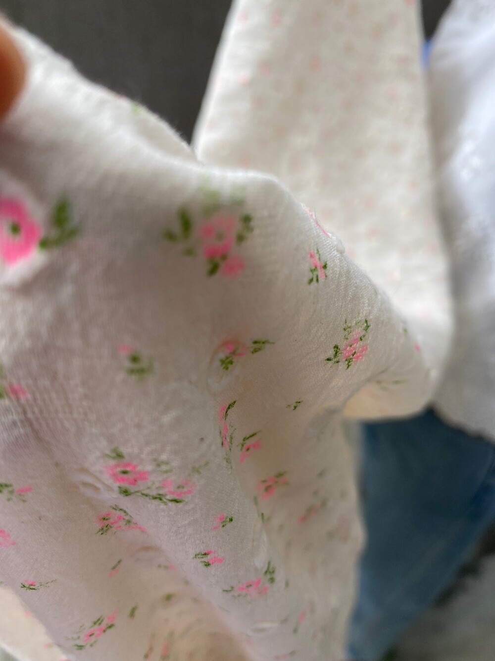전체적으로 부드럽고 사랑스러운 느낌이 드는 원단이에요.