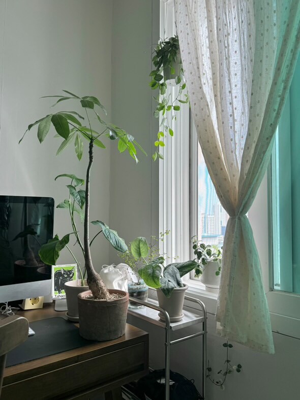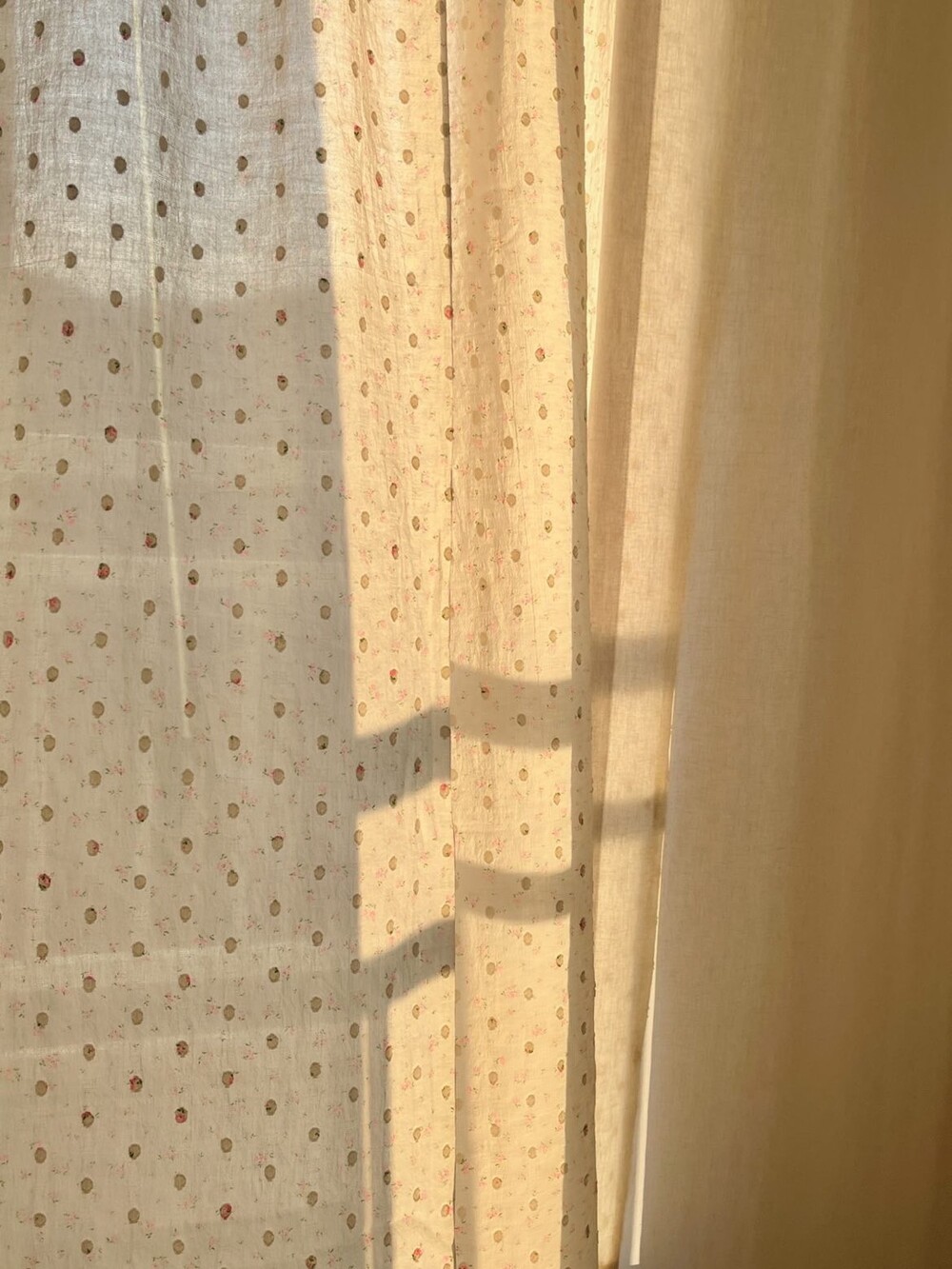 단가가 높지만 흔하지 않아서 발견하고 바로 데려왔어요. 커튼으로 만들었을때 가장 예쁜 느낌.