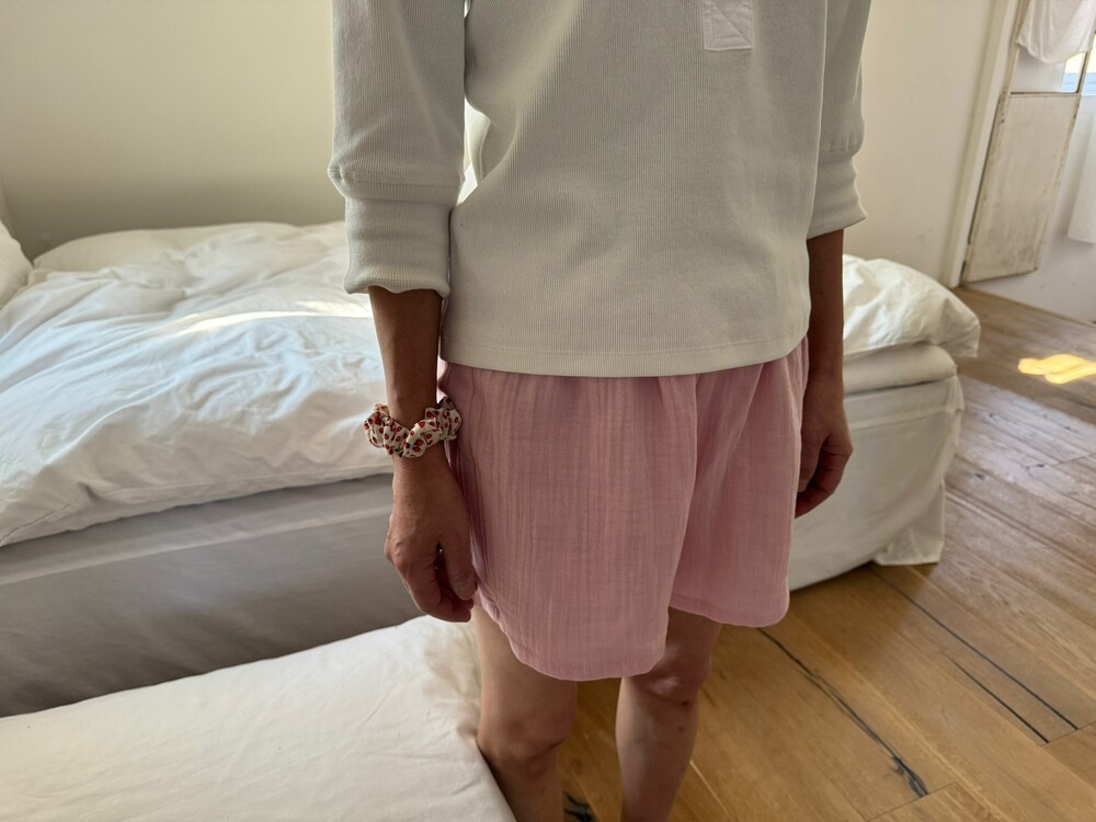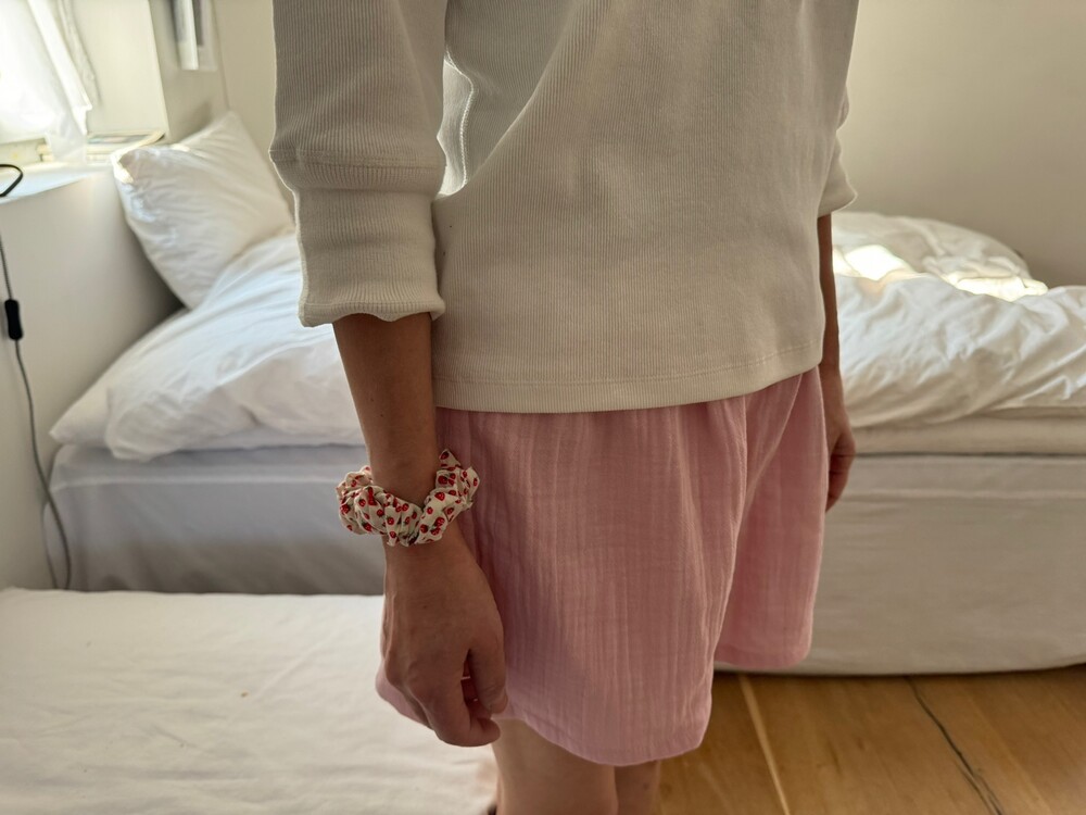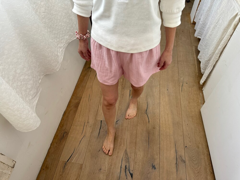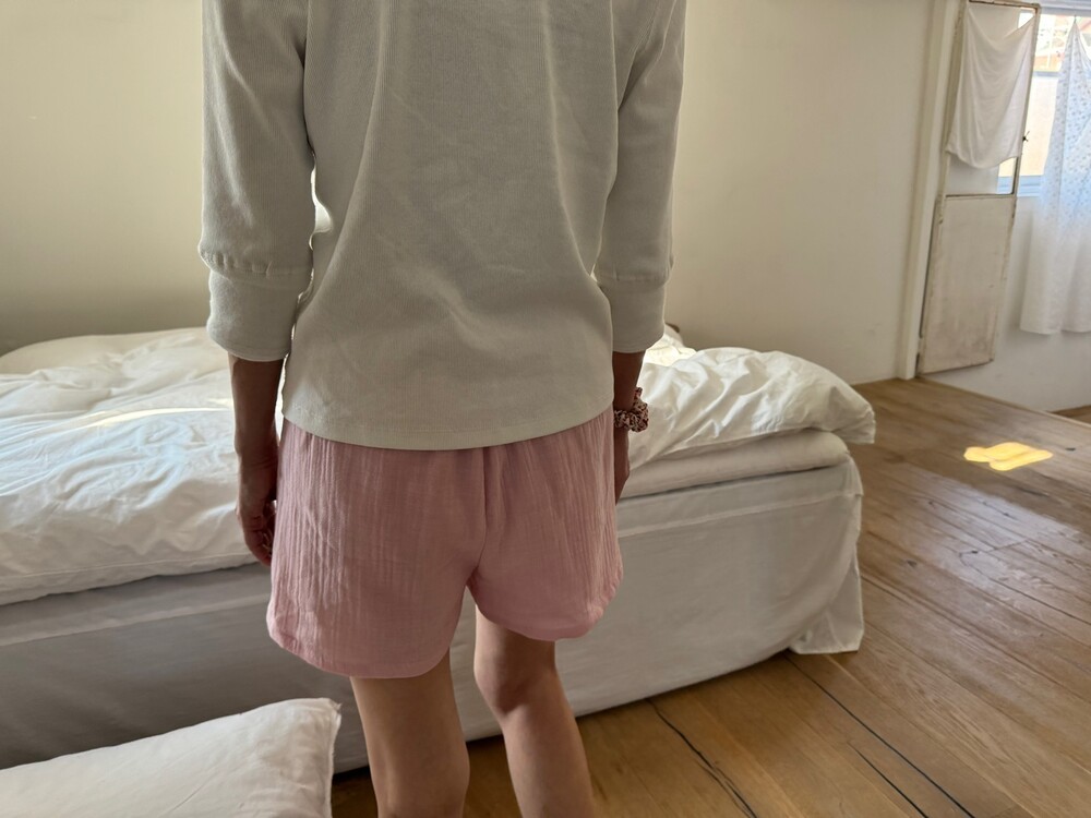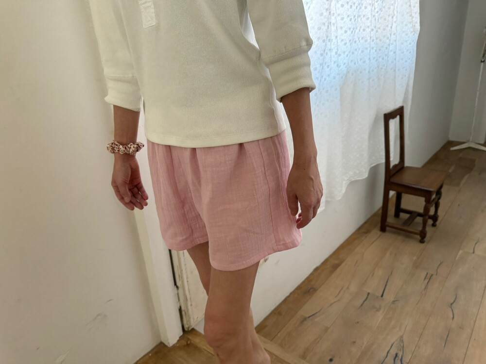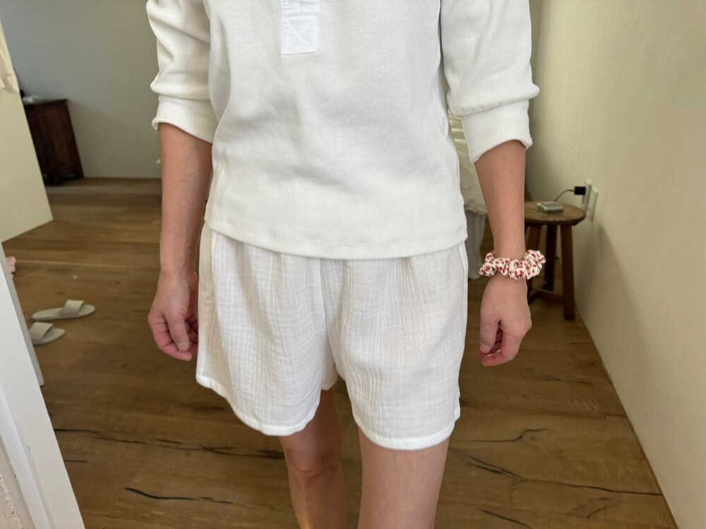 2중거즈 잠옷 반바지- 화이트, 연차콜, 핑크