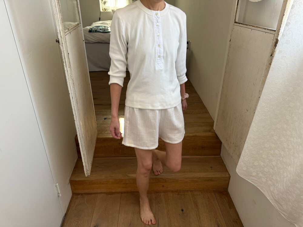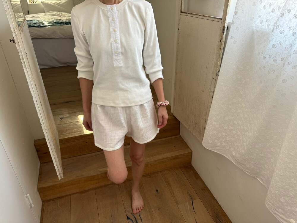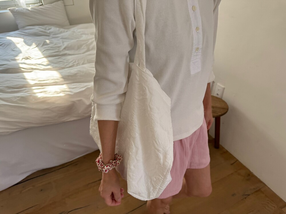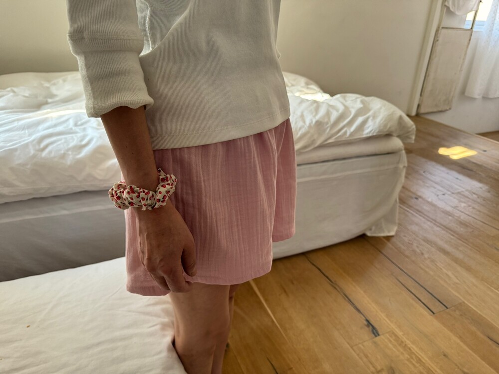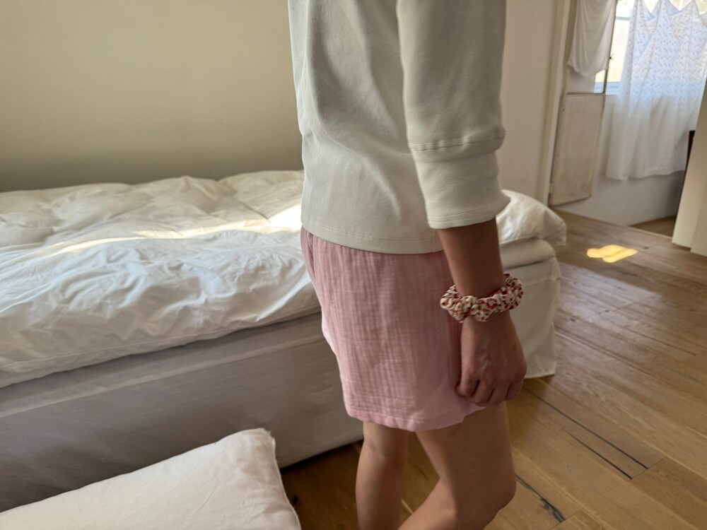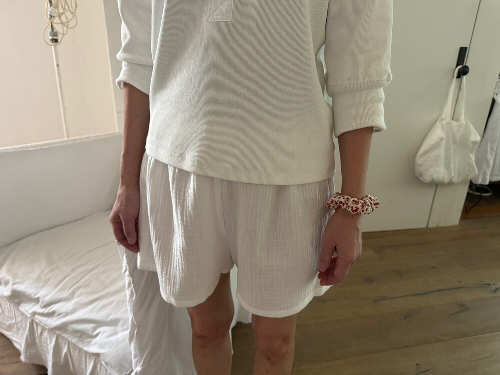2중거즈 잠옷 반바지- 화이트, 연차콜, 핑크
