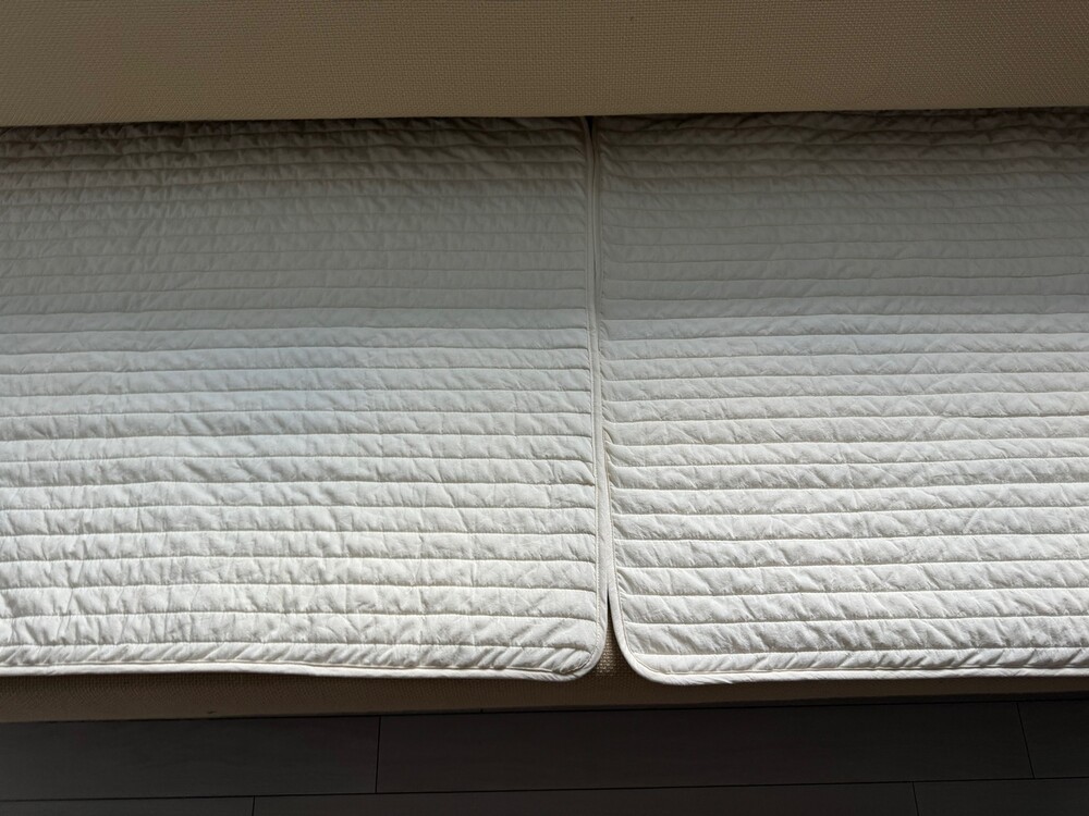 왼쪽이 누빔면(봄/여름용), 오른쪽이 극세사(가을/겨울용).