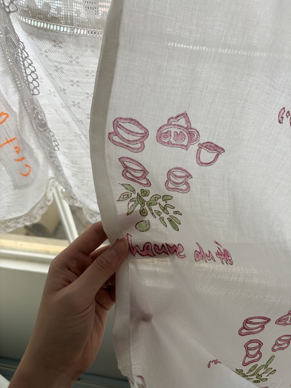 분홍 찻잔 커튼/패브릭포스터