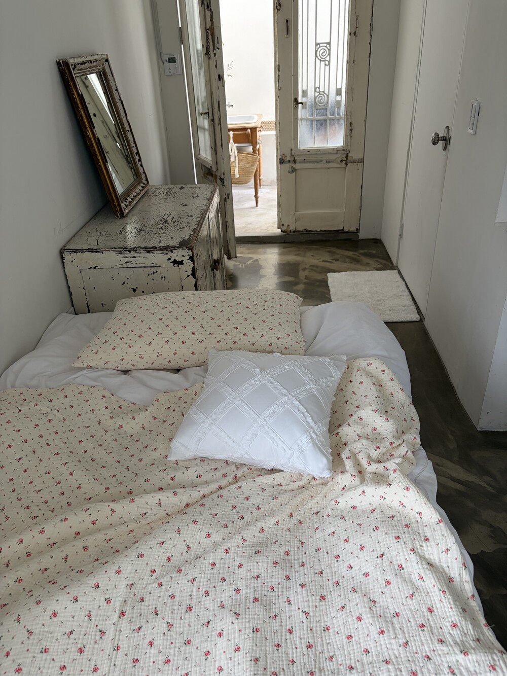잔꽃 패치워크 이불과의 조합도 예쁜.