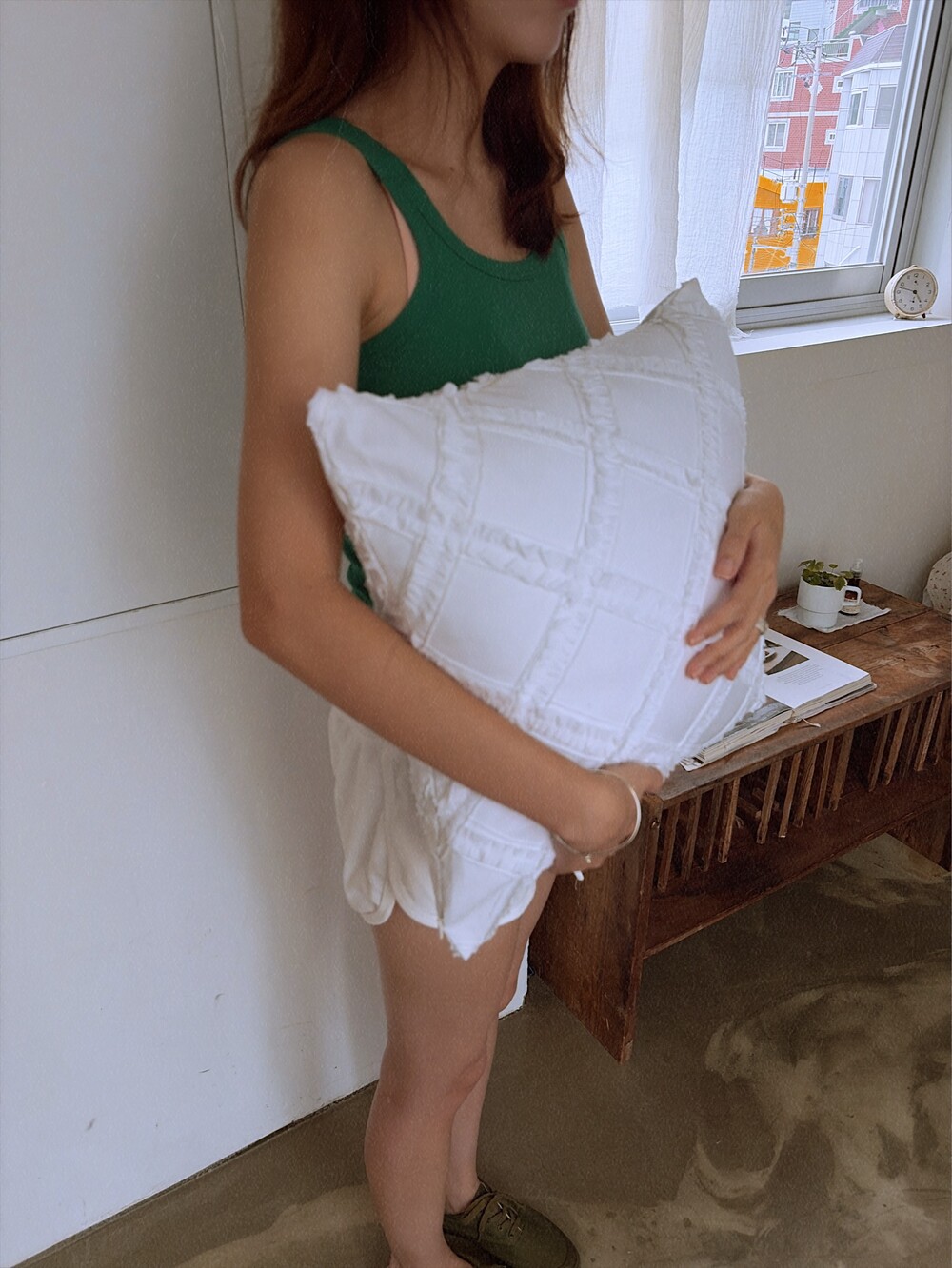 장미거즈 베개커버와 블랭킷, 프릴쿠션.
