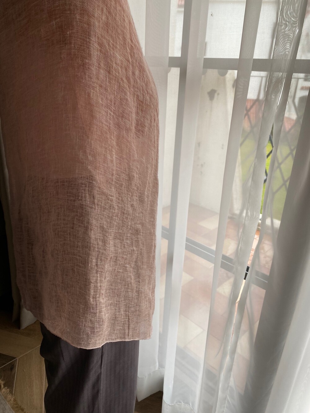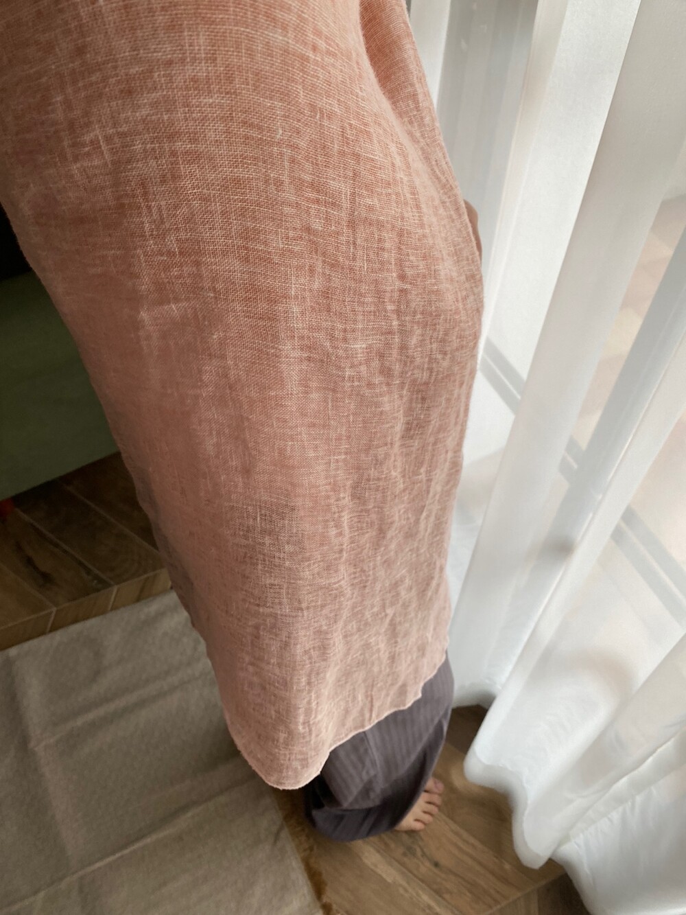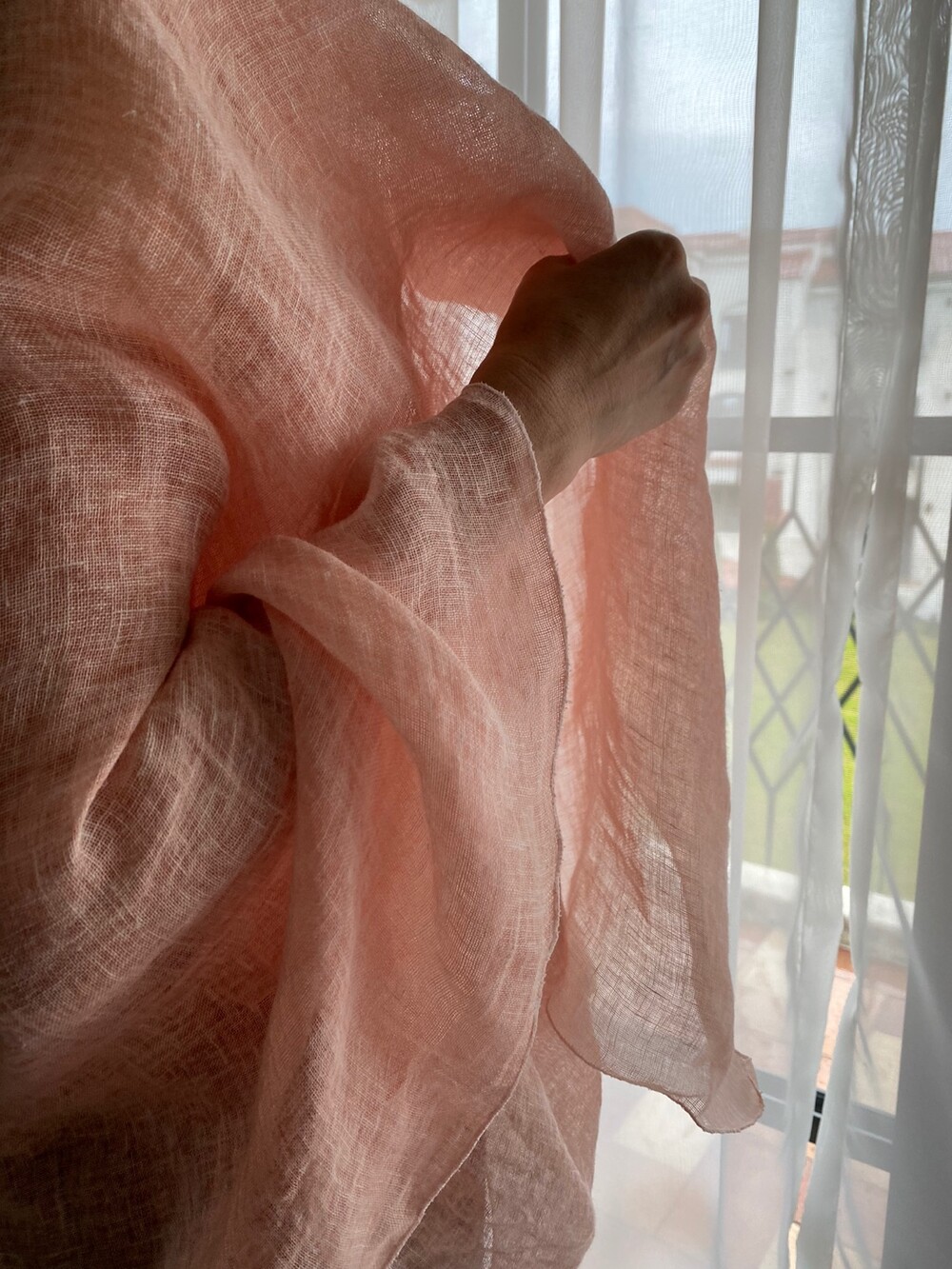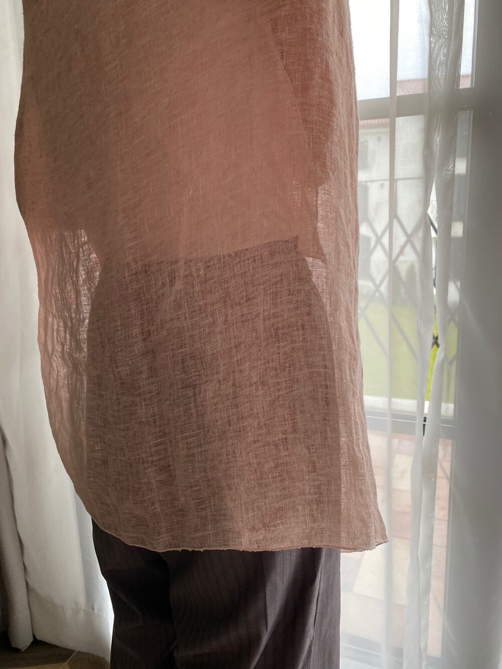 살구핑크 린넨 숄/커튼