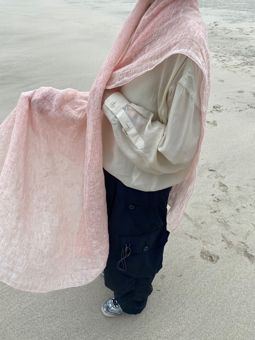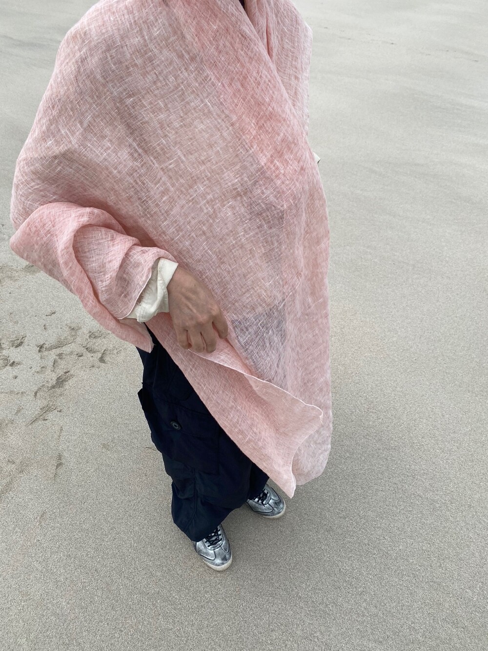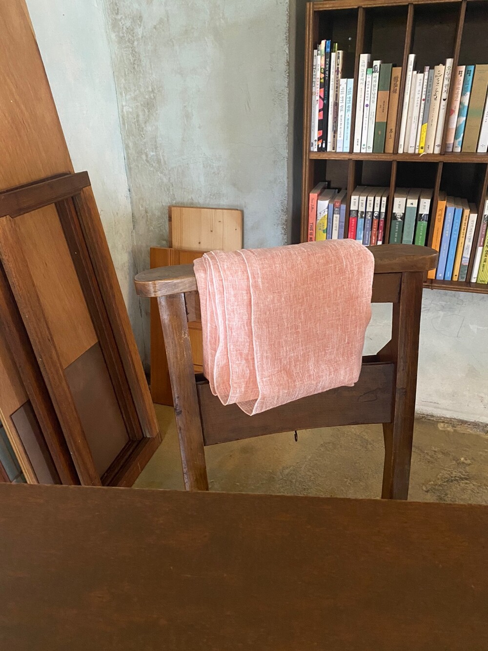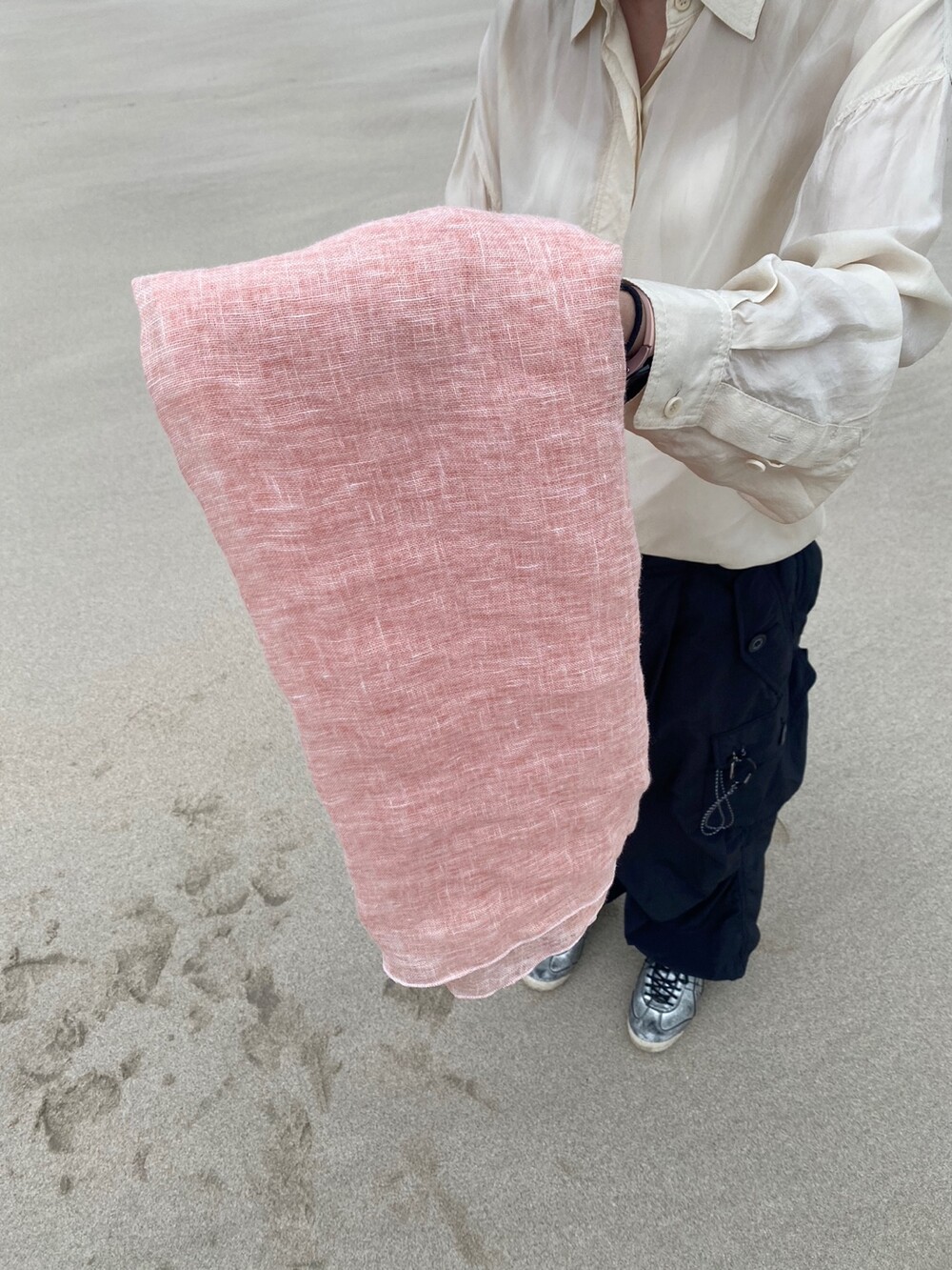 살구핑크 린넨 숄/커튼