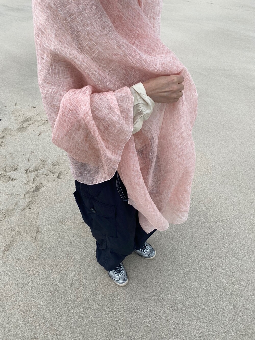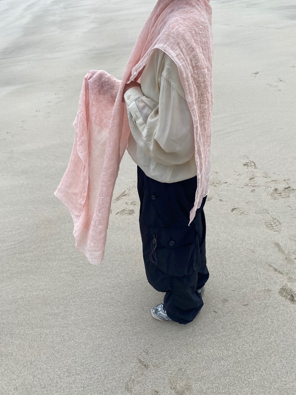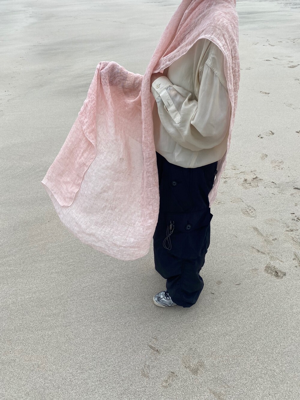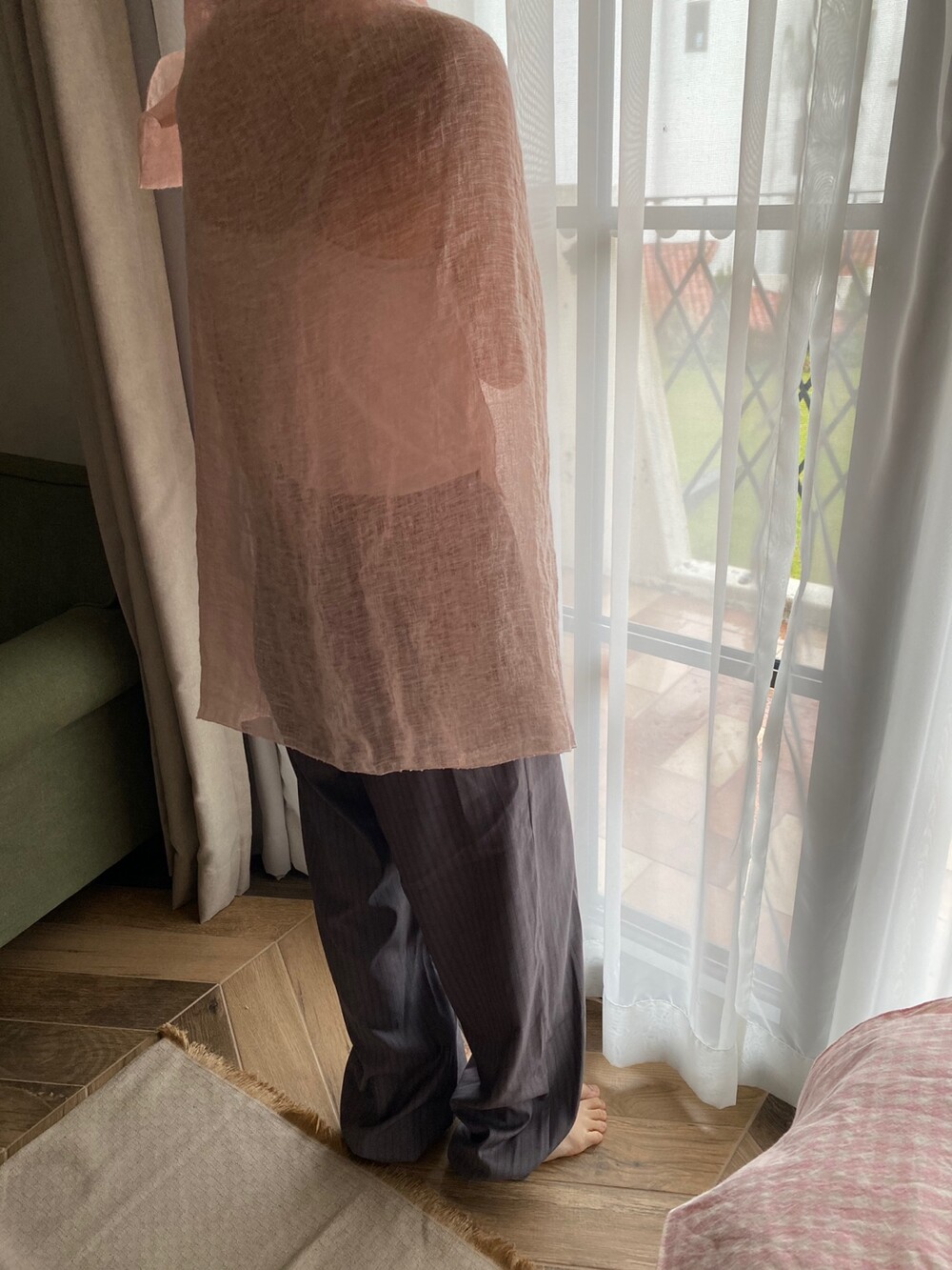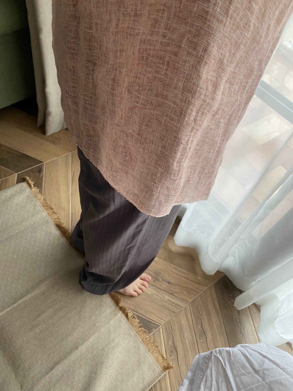 살구핑크 린넨 숄/커튼