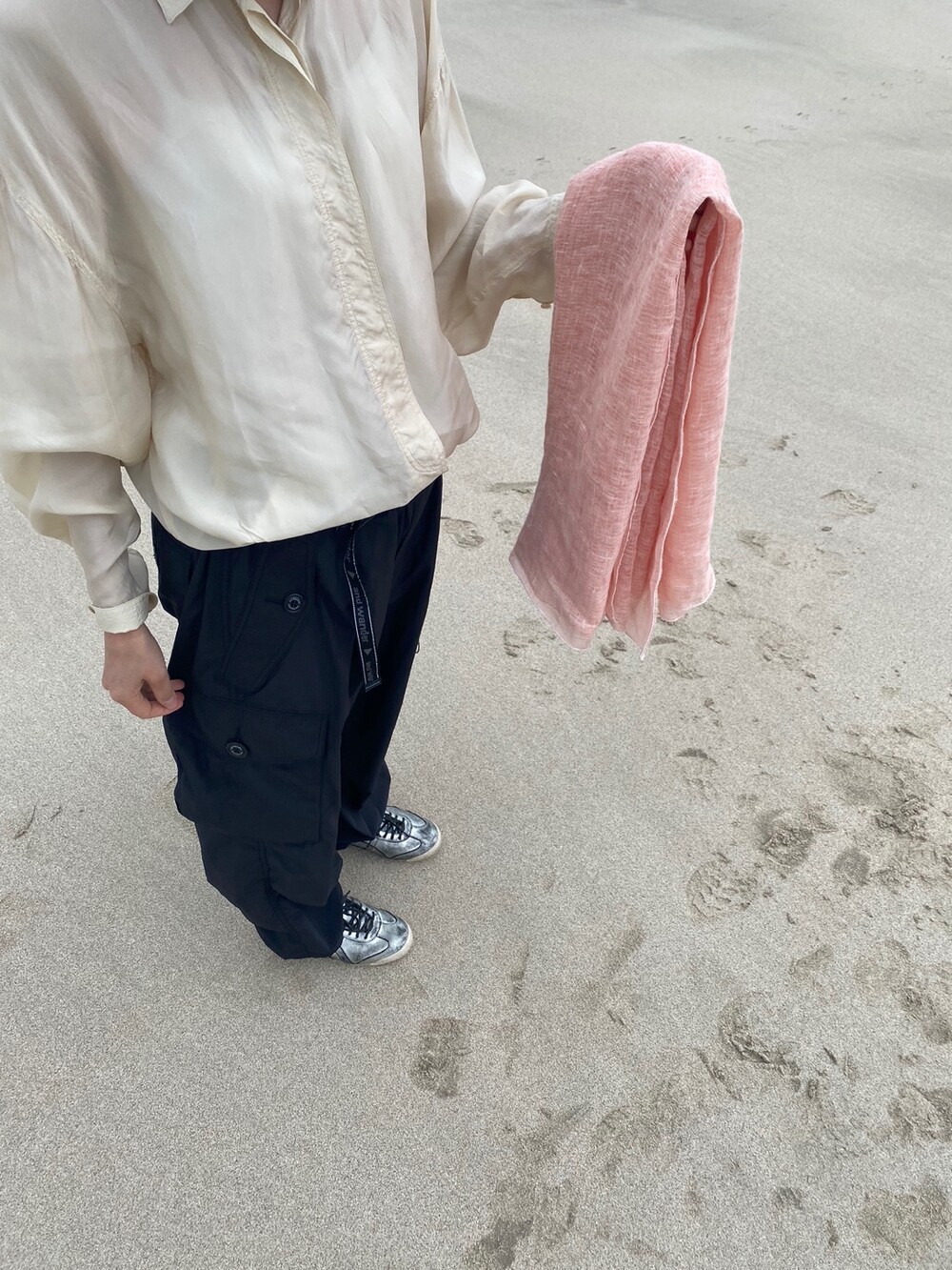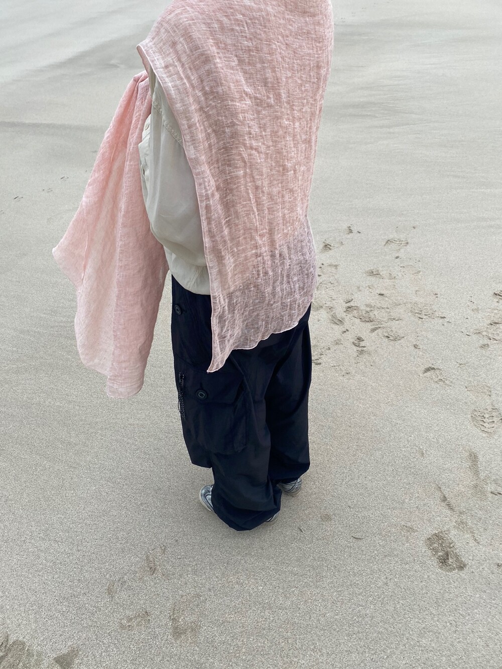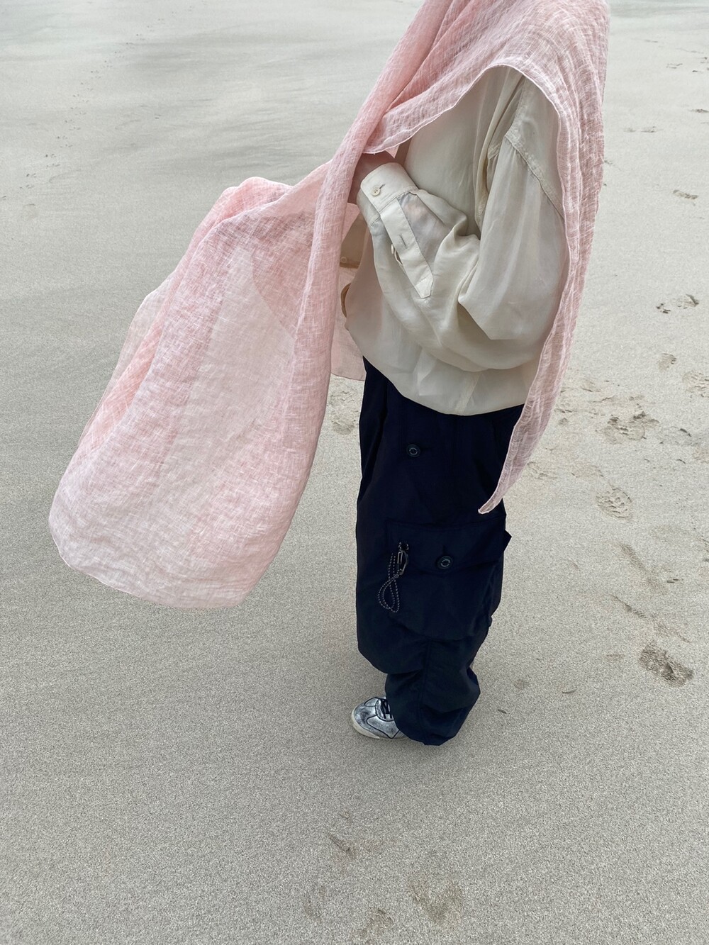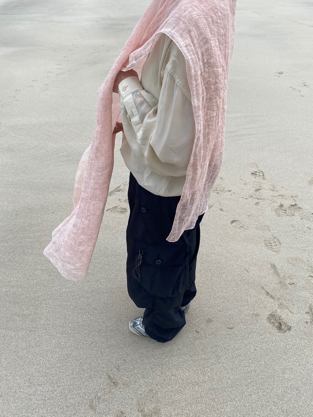 살구핑크 린넨 숄/커튼
