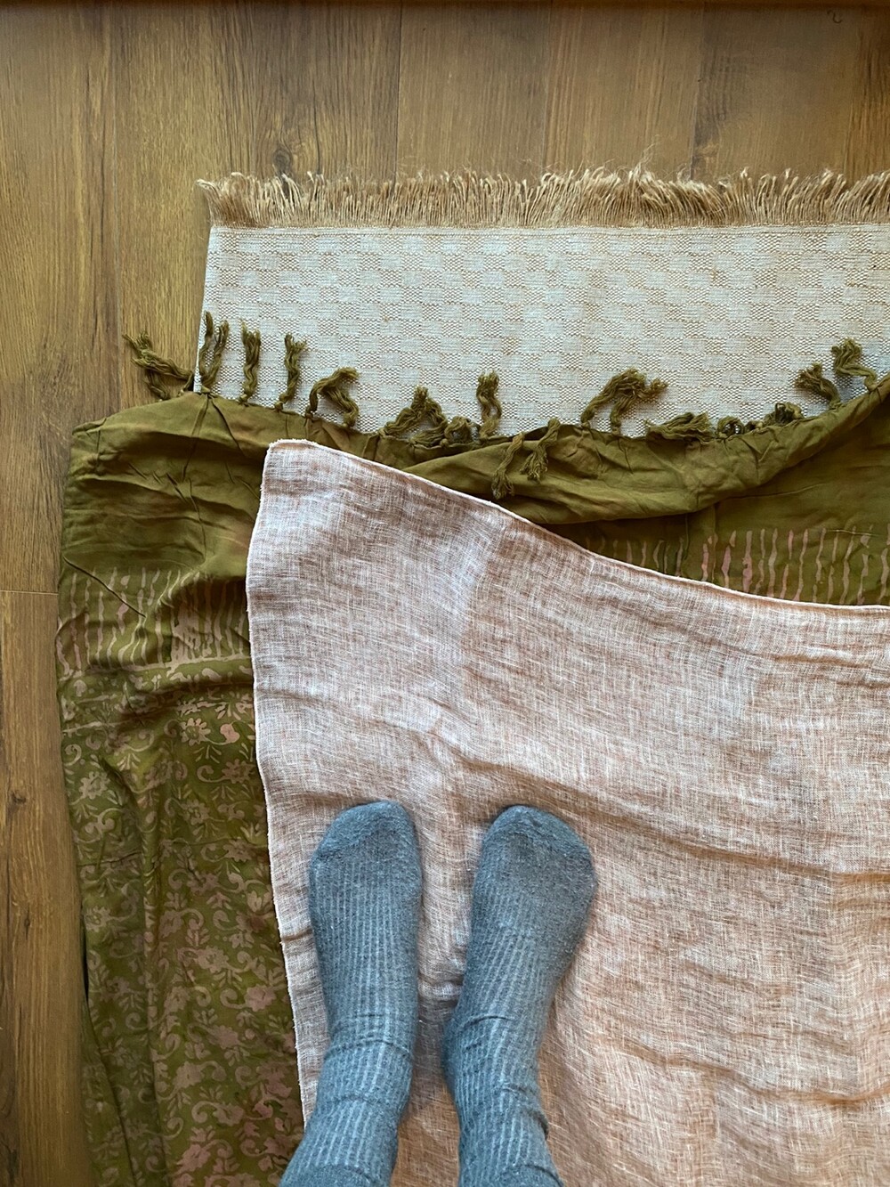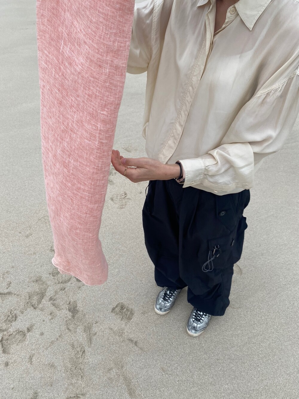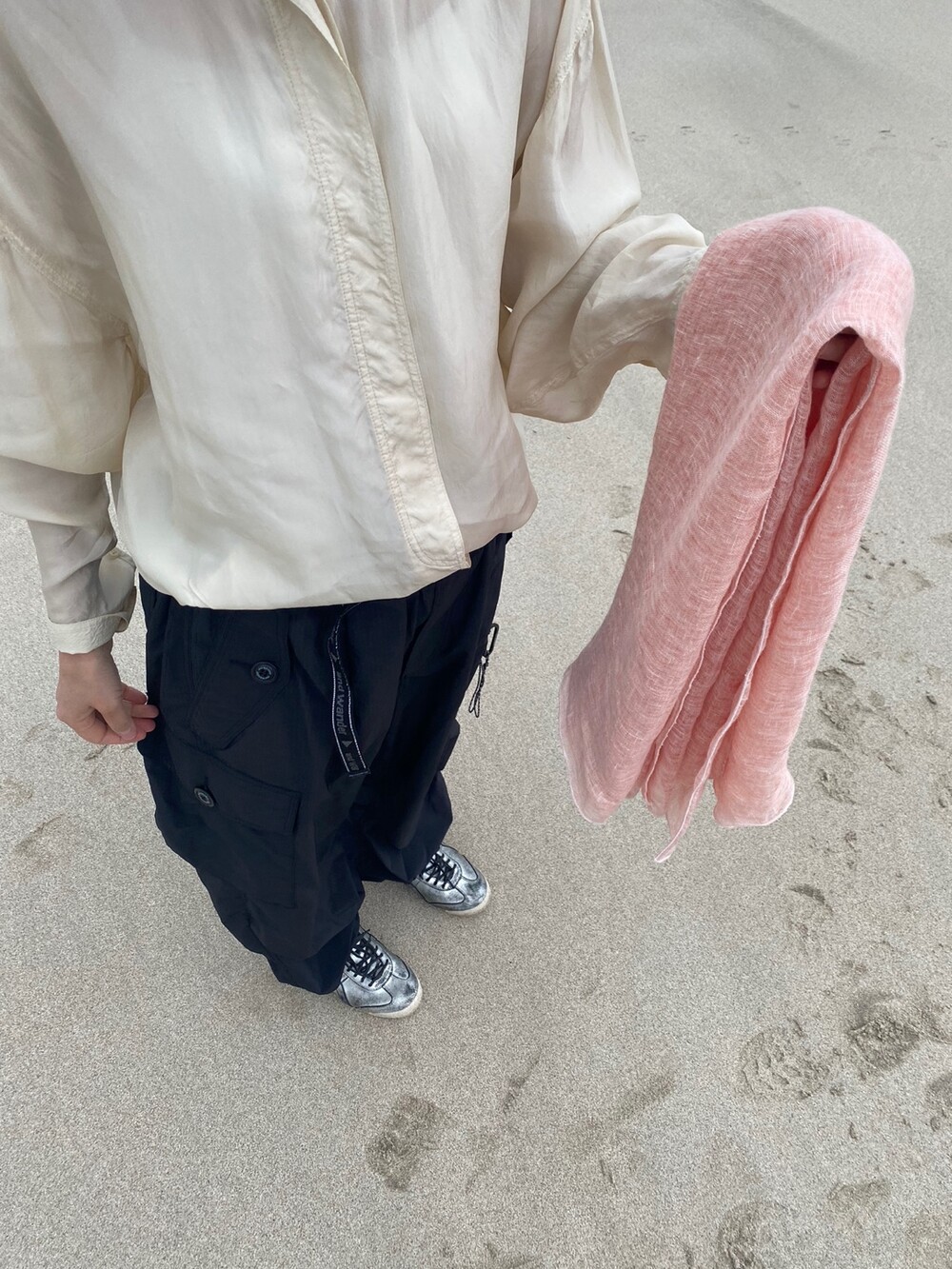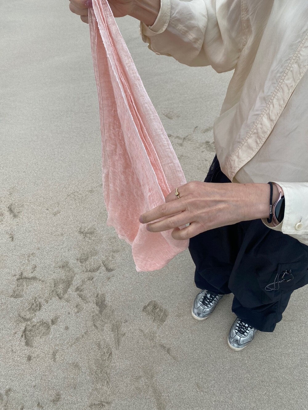 살구핑크 린넨 숄/커튼
