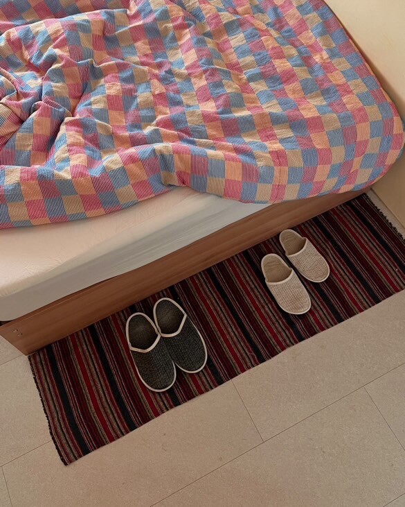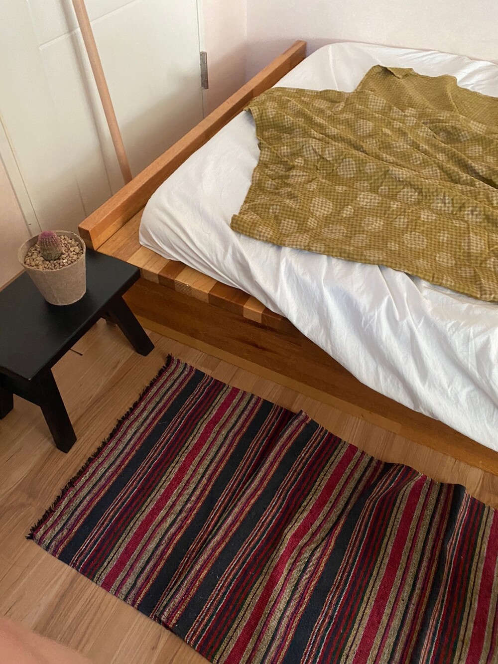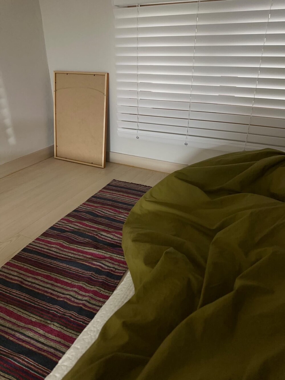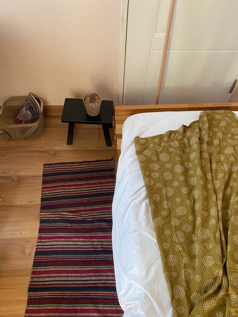 침구류와 너무 잘 어울리게 배치해주신 현경 고객님의 방.