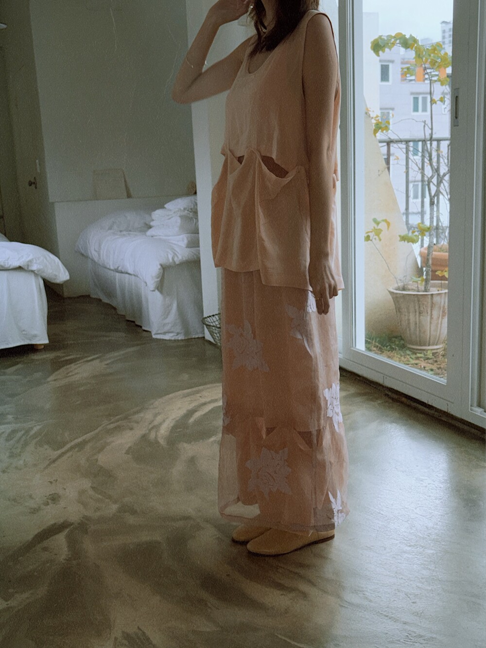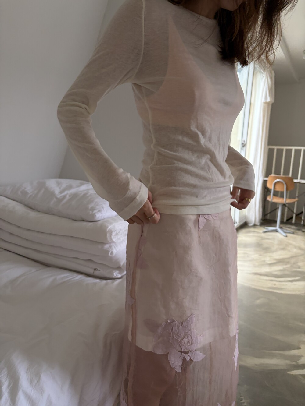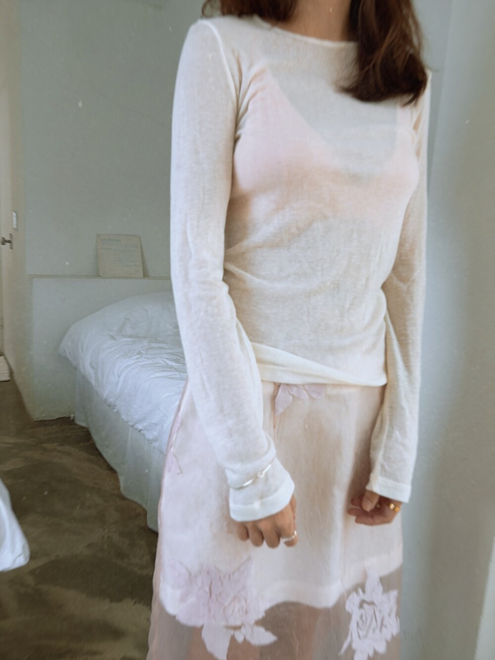 주의사항 : 비치는 오간자로, 속치마가 내장되지 않은 디자인입니다.