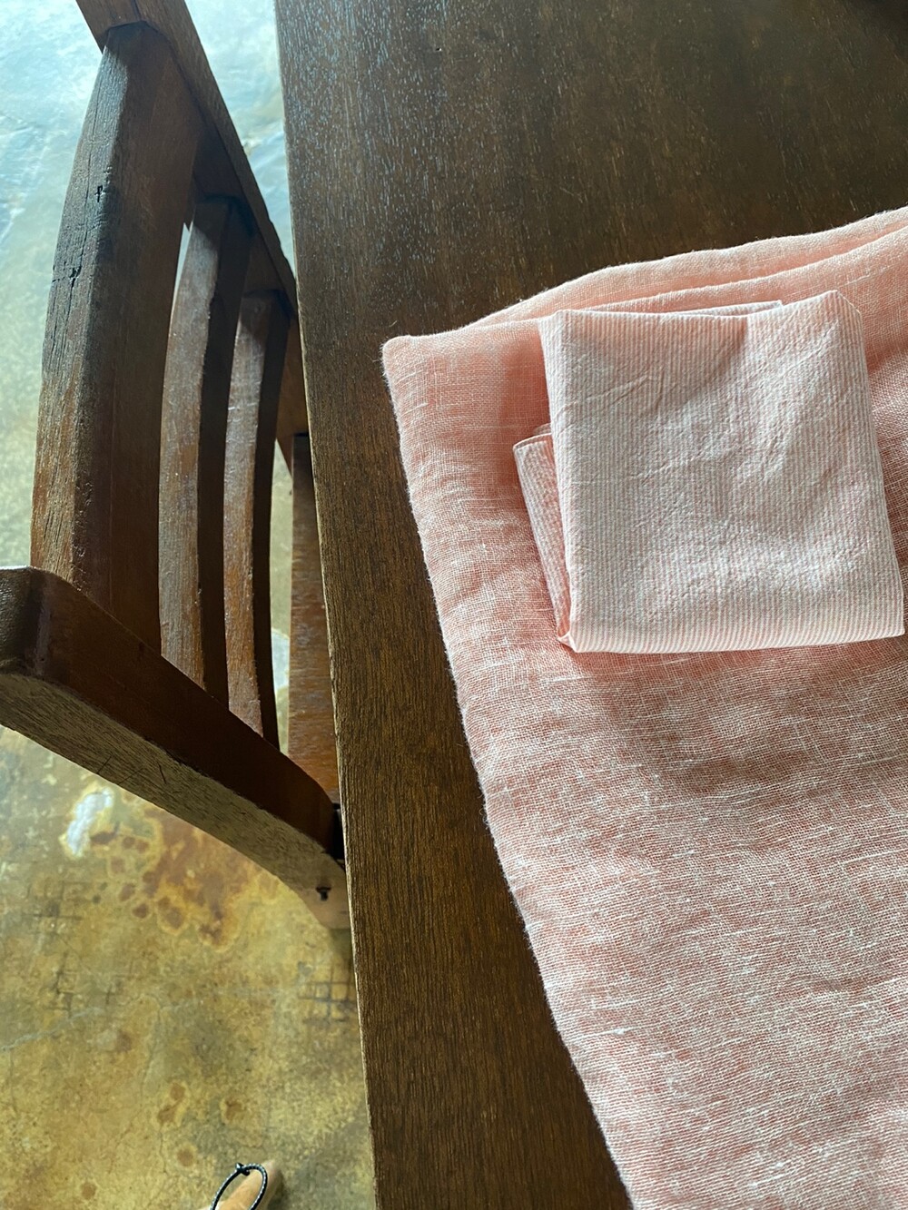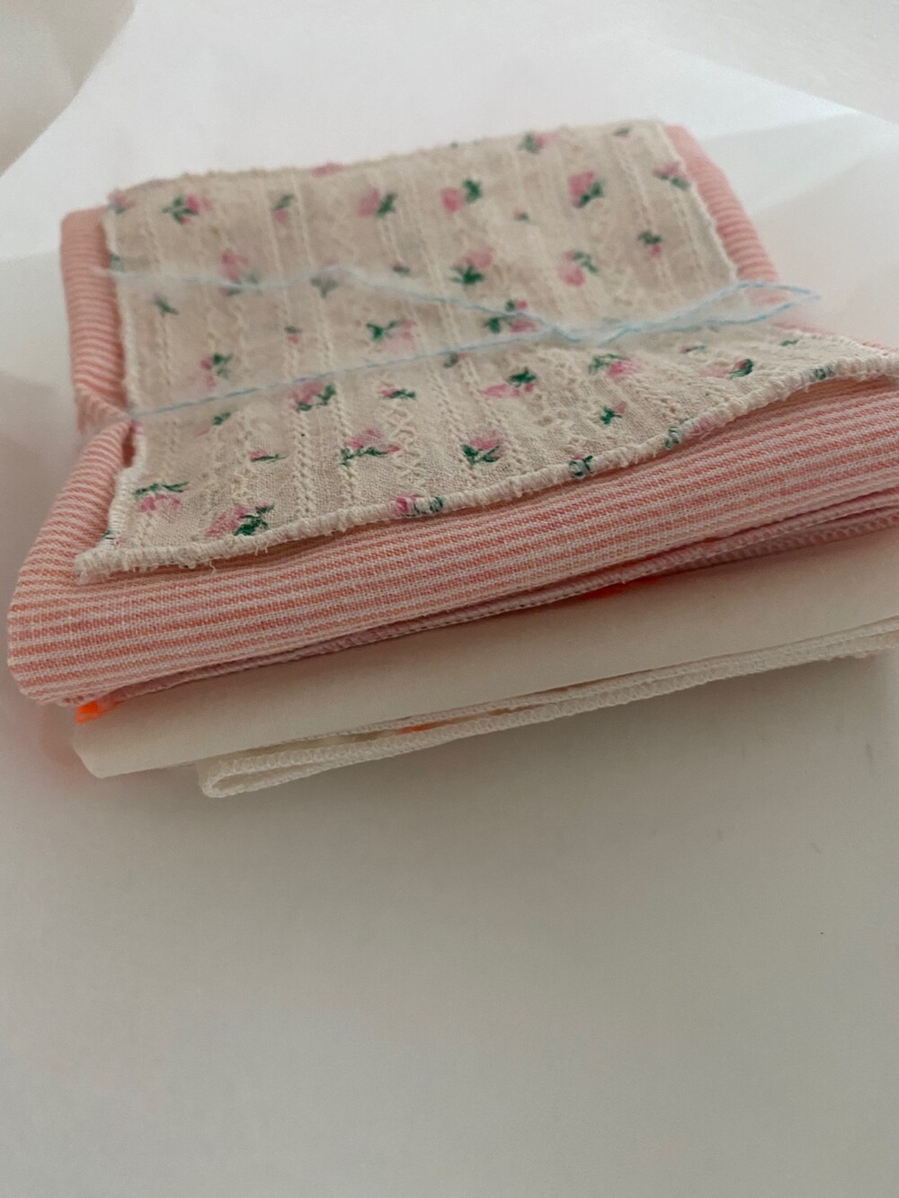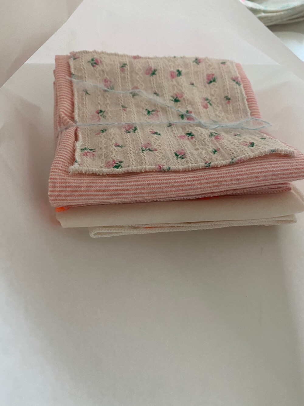 잔스트라이프 도시락보자기 살구색 & 오렌지플라워 도시락보자기, 녹의꽃 티코스터 조합