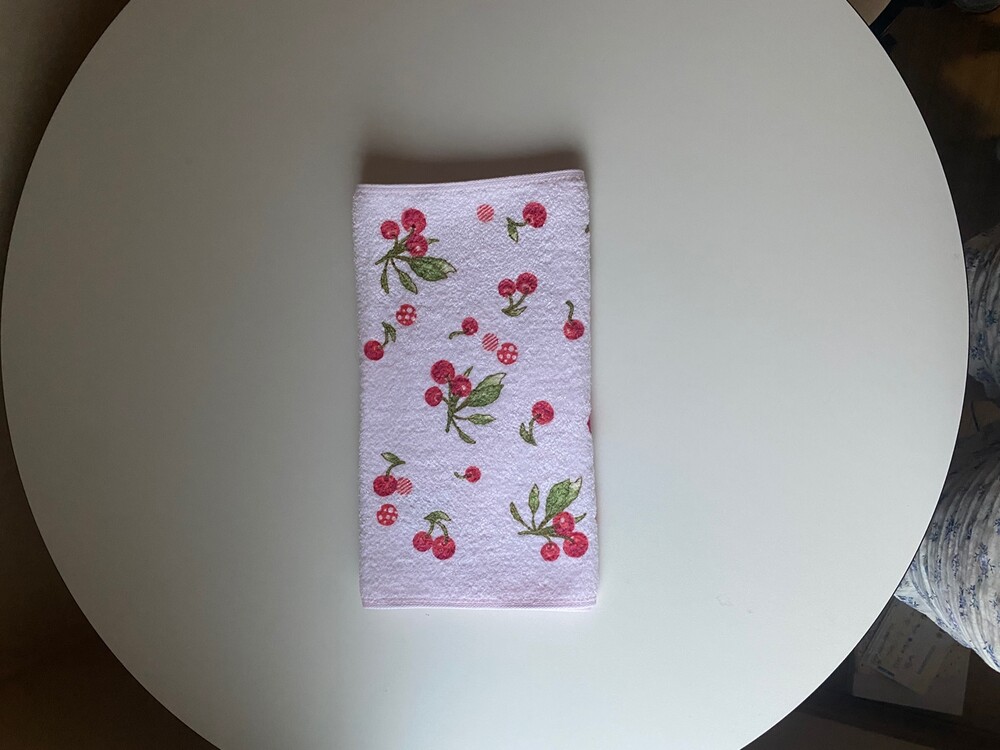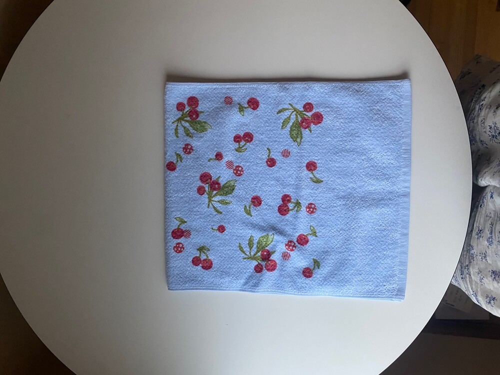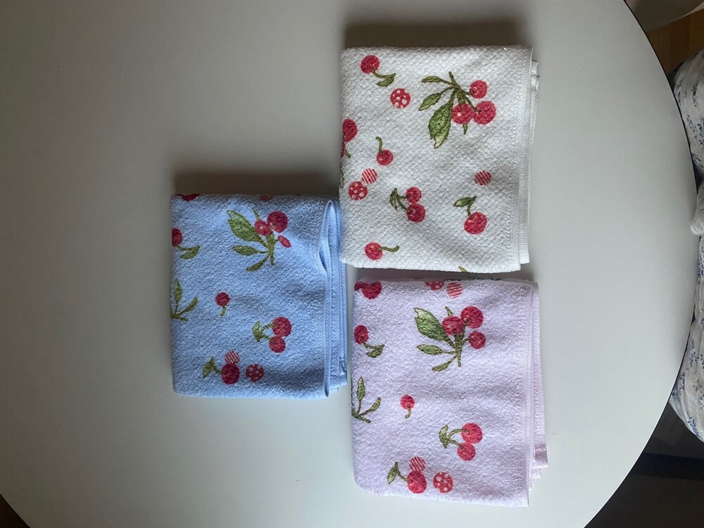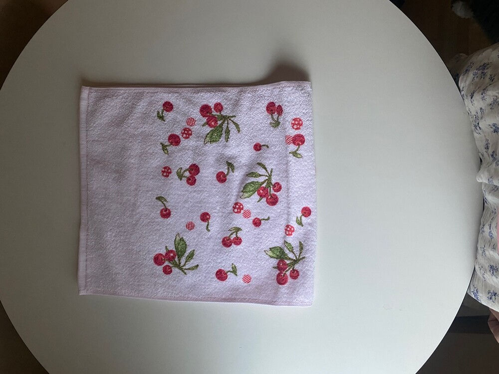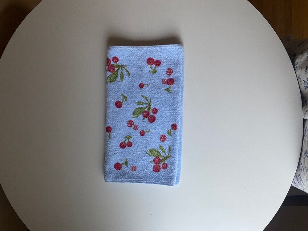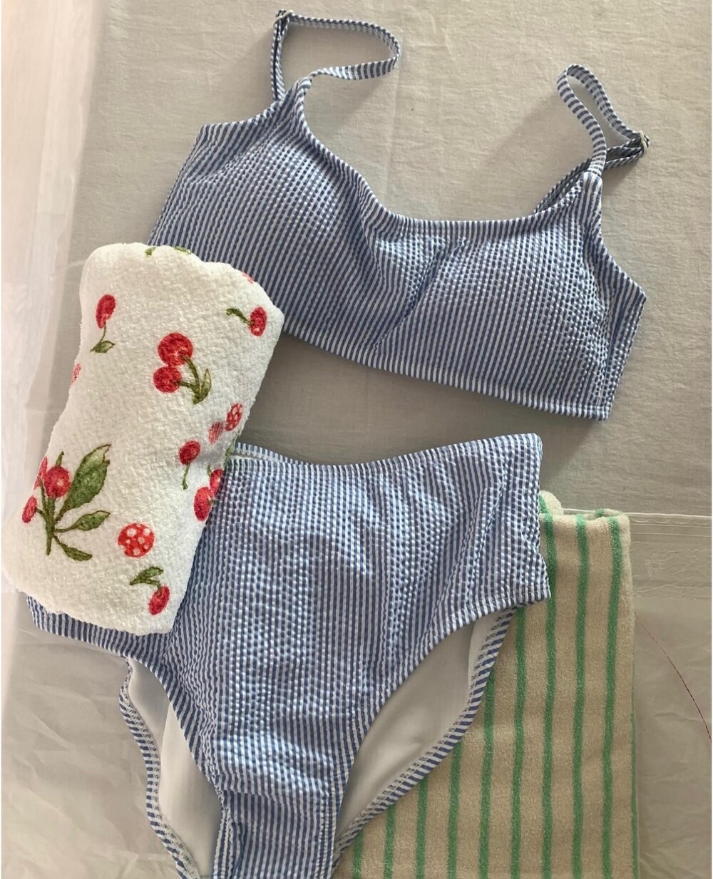 아오리의 민트 비치타올과 체리수건 화이트 조합 너무 귀엽구요.