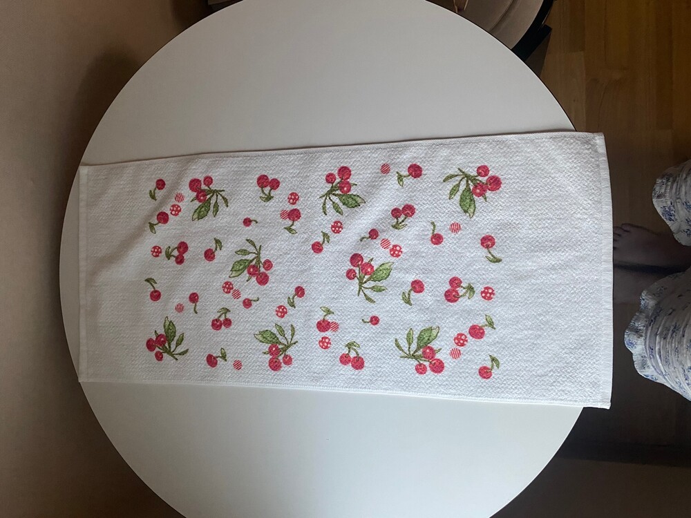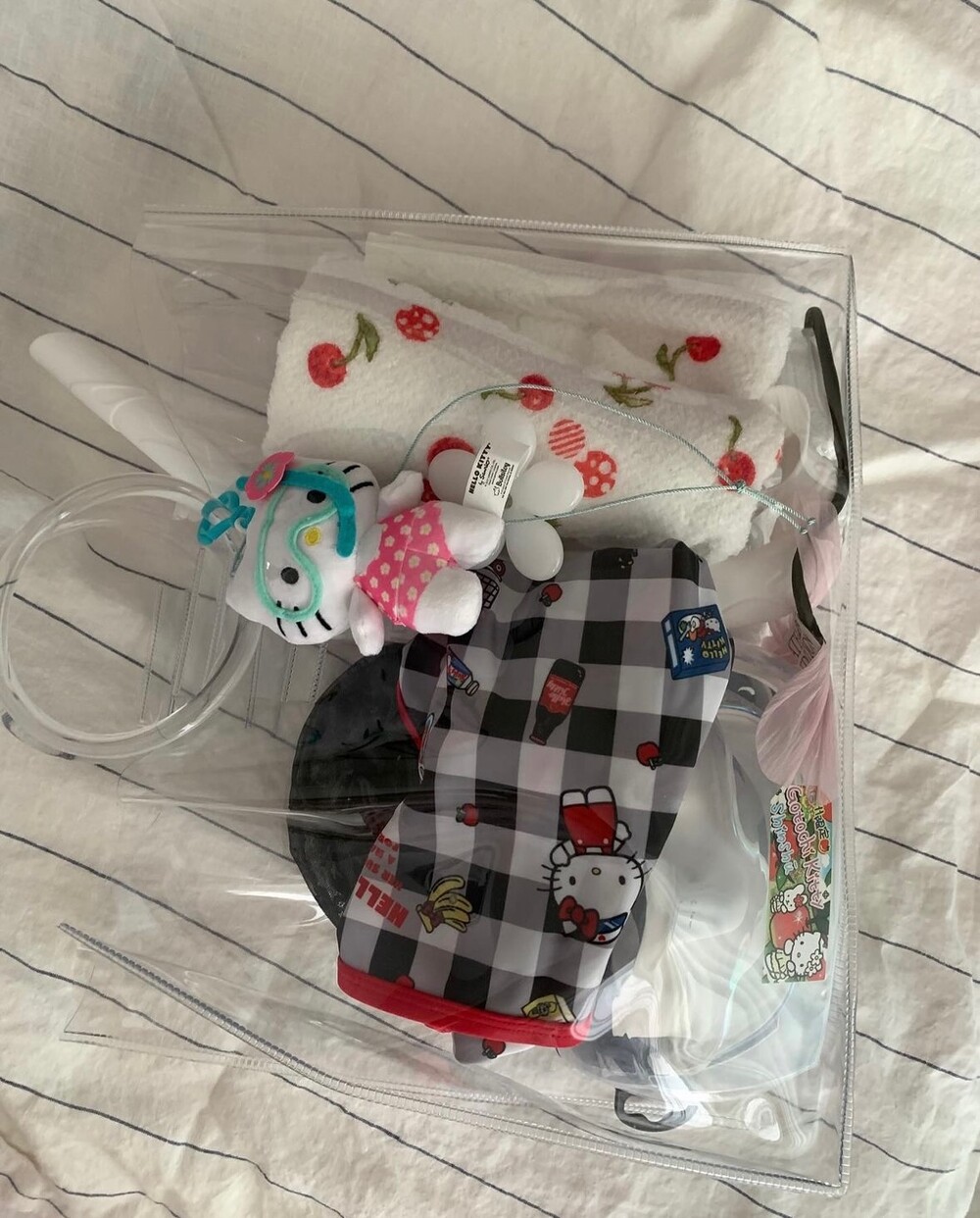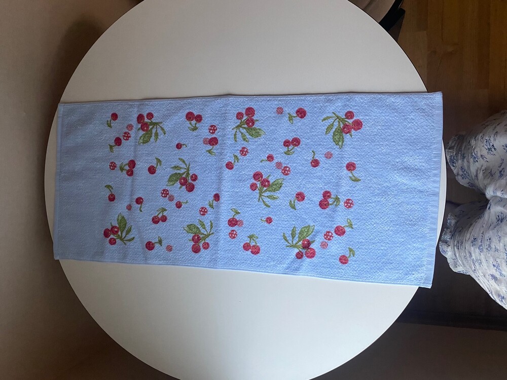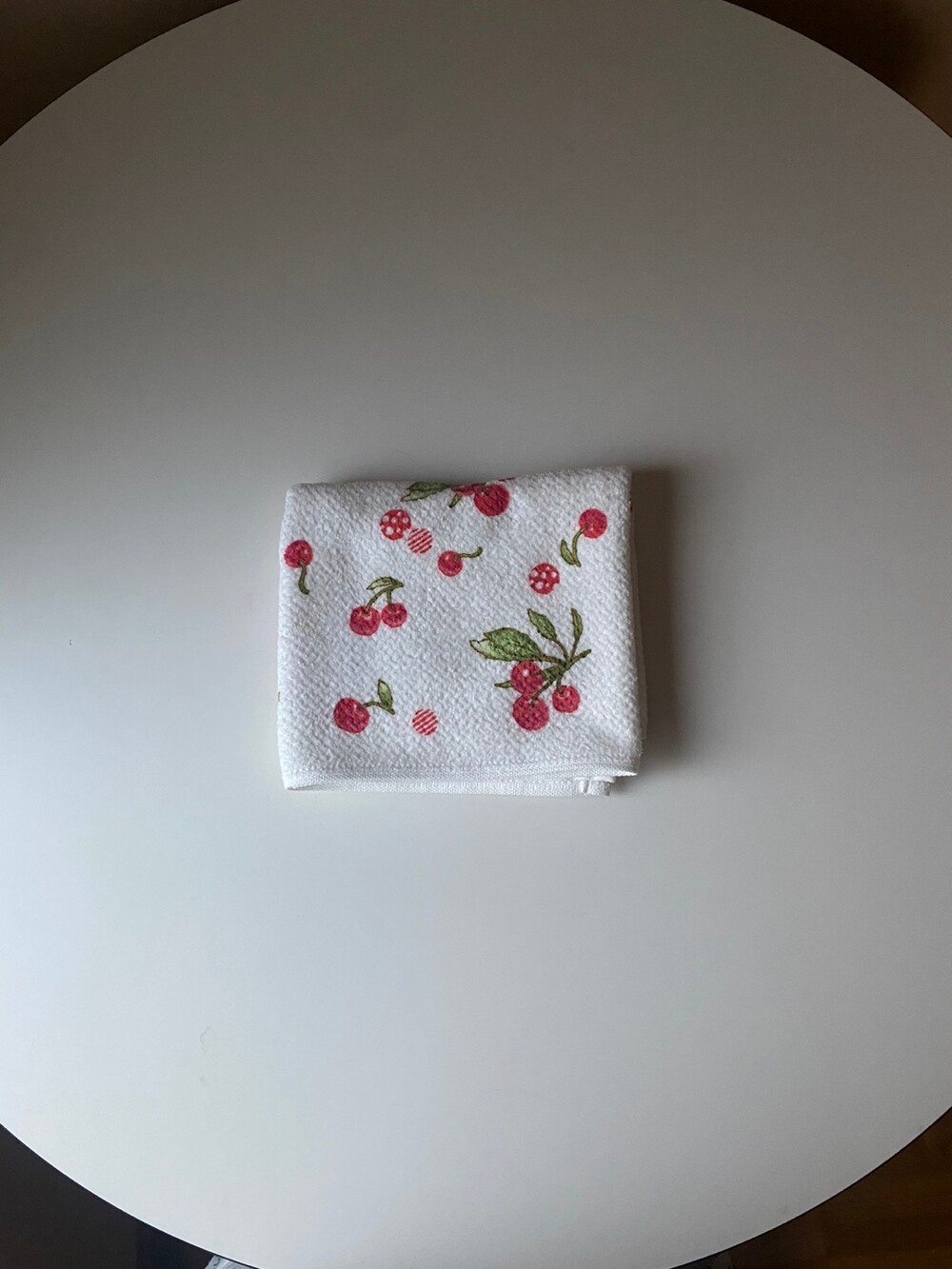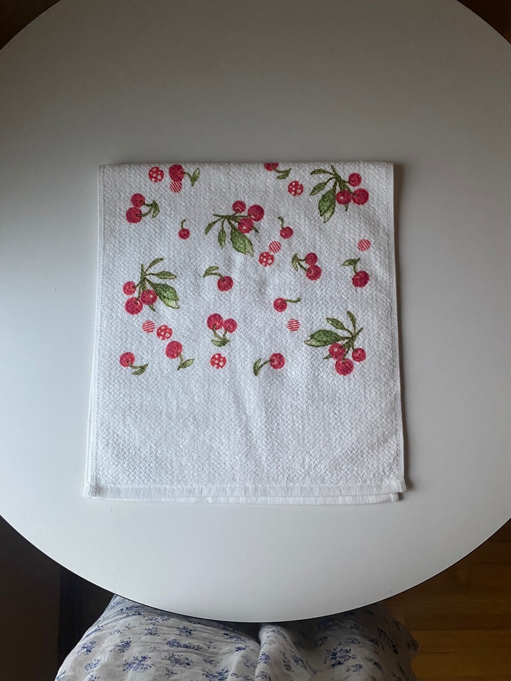 아오리의 민트 비치타올과 체리수건 화이트 조합 너무 귀엽구요.
