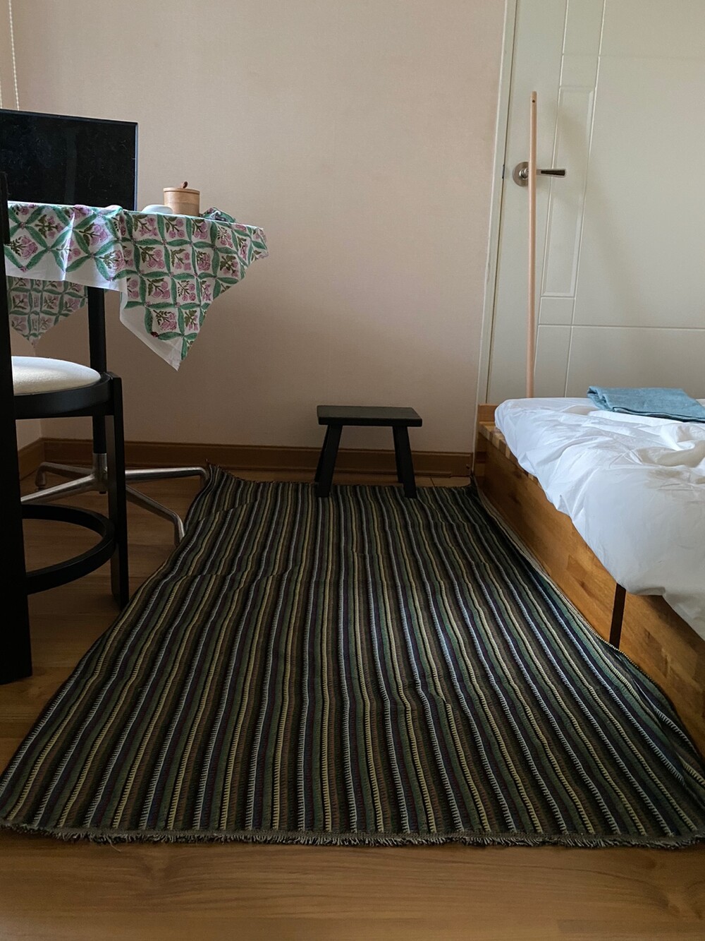 페페와 이케아 파란색 스툴, 카펫이 참 잘어울려서