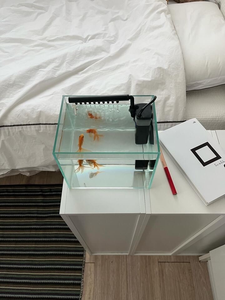 어항과 흰 침구와도 너무 잘 어울려요.